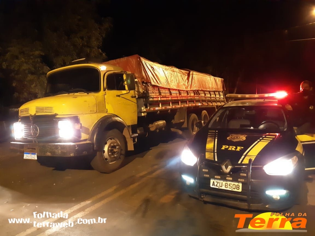 Os policiais rodoviários federais suspeitaram de um caminhão Mercedes 1113 que transitava pela BR-272 vindo da região próxima ao Rio Paraná em alta velocidade.
