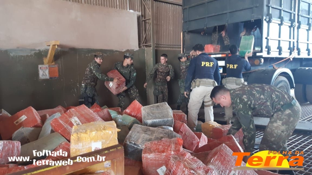O Exército Brasileiro prestou apoio à PRF na logística de encaminhamento da droga.