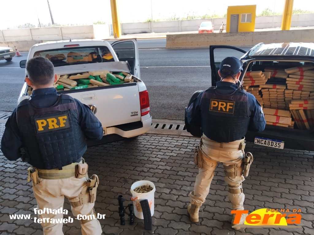 Na Caminhonete, foram apreendidos 1.041 munições de fuzil calibre .762, duas lunetas de precisão, um carregador de fuzil .762, além de cerca de 603 quilos de maconha e 36 quilos de skunk.