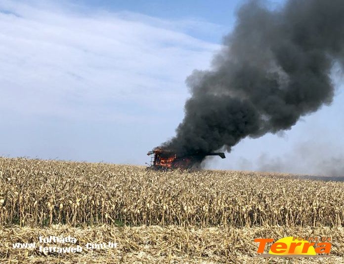 Palotina - Um sinistro foi registrado na tarde de sábado, dia 14, em uma lavoura localizada na região de São Camilo, aonde uma colheitadeira que estava fazendo a colheita de milho, acabou sendo atingida pelo fogo.