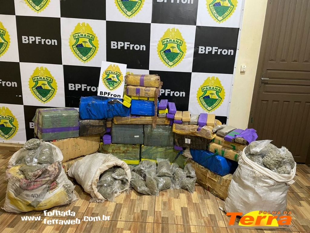 Guaíra - Na quarta-feira, (08/09) policiais militares do BPFRON - Batalhão de Polícia de Fronteira realizavam patrulhamento na cidade de Guaíra-PR, durante Operação Hórus, quando abordaram um estabelecimento comercial. No local foram apreendidos diversos tabletes de substância análoga a maconha totalizando 297,9 kg da droga, uma máquina caça-niquel, um máquina de cartão utilizada para apostas de jogo do bicho além da quantia de R$2.031,00 em espécie. Em um veículo estacionado no estabelecimento comercial foram encontrados 34,03 kg de substância análoga a maconha tipo morruga. Nesta ação dois homens foram detidos e encaminhados com os materiais apreendidos aos procedimentos cabíveis.