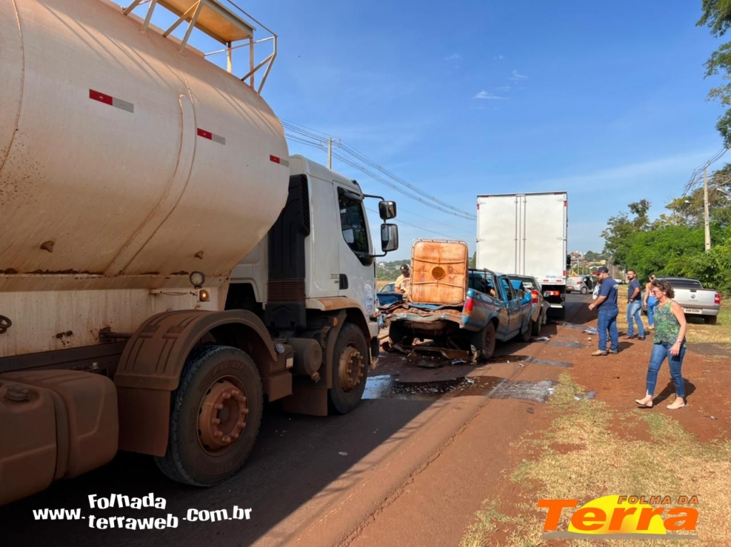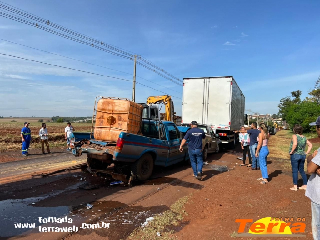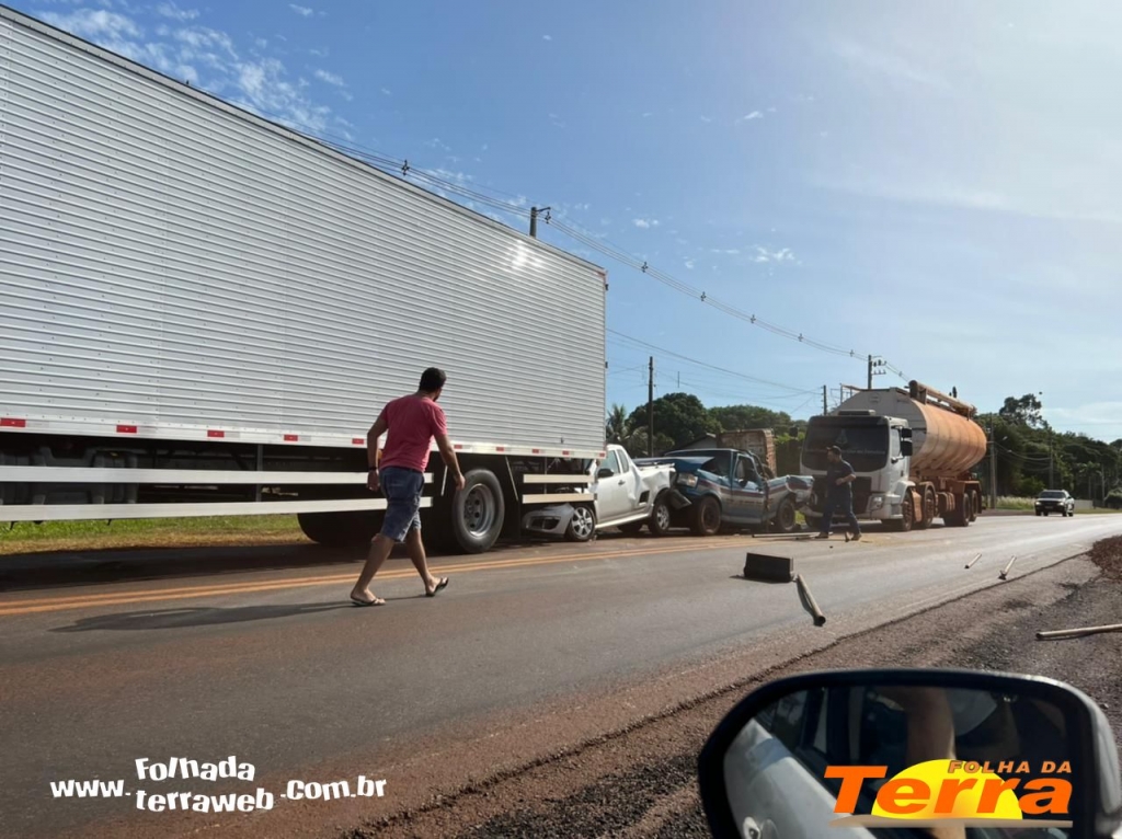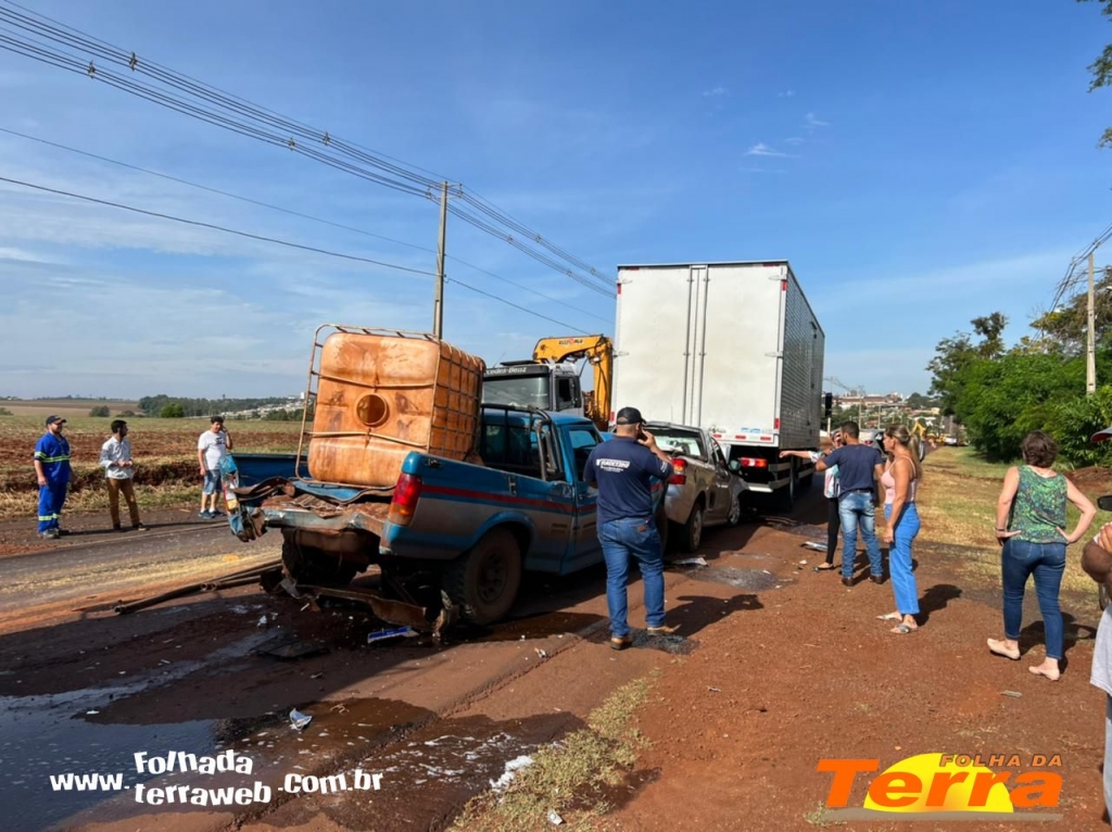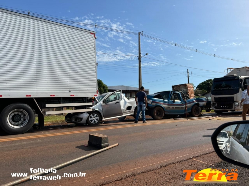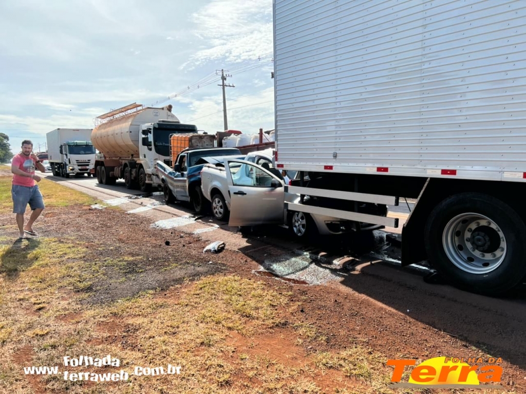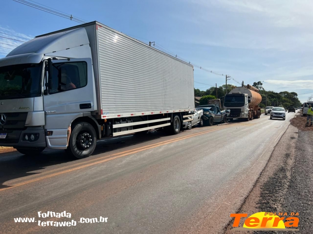Palotina - Um acidente do tipo engavetamento foi registrado na manhã desta sexta-feira, dia 25, na PR 364, saída para Assis Chateaubriand, envolvendo cinco veículos, dois caminhões e duas pick-up, em um trecho que está sendo feito reparos na pista.