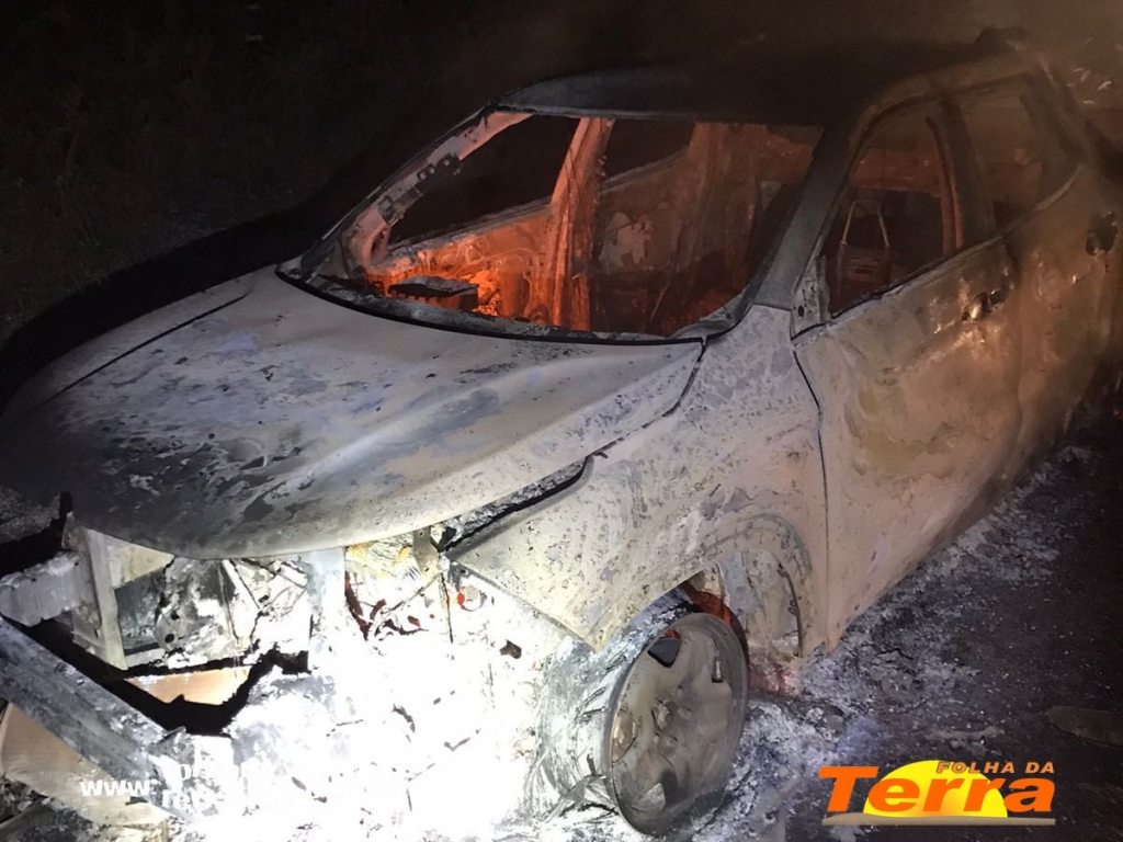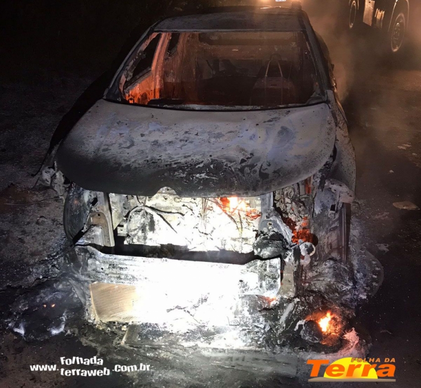 O veículo já consumido pelas chamas foi localizado pela PM na Estrada Norte Sul