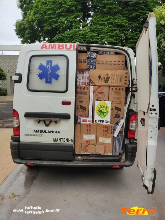 Ivaté - Na quarta-feira, dia 2, policiais militares do BPFRON - Batalhão de Polícia de Fronteira patrulhavam a cidade de Ivaté -PR, durante Operação Hórus, quando deram ordem de parada a uma Van caracterizada como ambulância e com equipamento giroflex. O veículo estava carregado com 5.500 pacotes de cigarros contrabandeados. O condutor, um homem de 29 anos, morador de Terra Roxa, foi detido e encaminhado com a Van e o contrabando para a delegacia da Polícia Federal em Guaíra.
