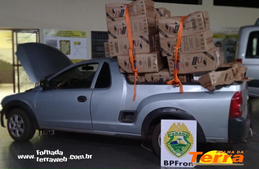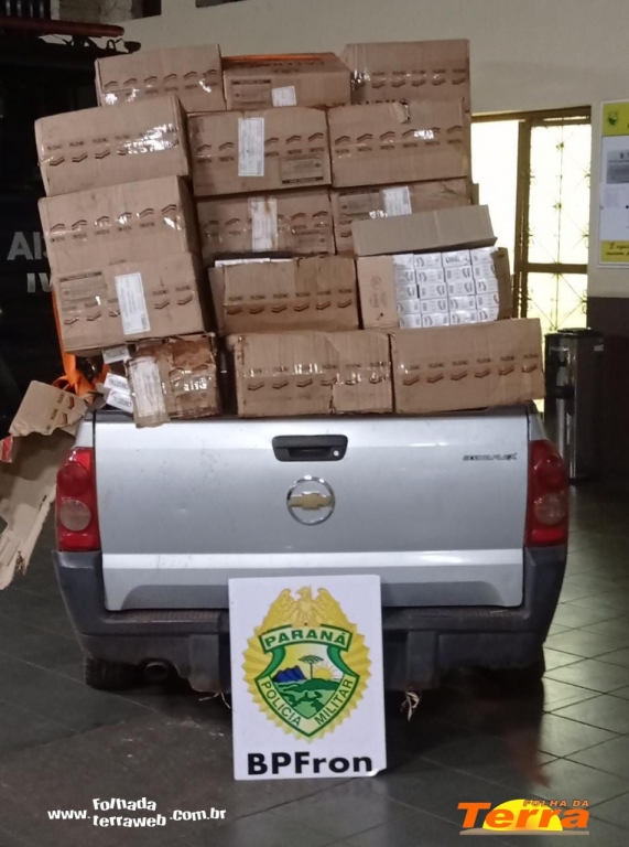 Guaíra - Na quarta-feira , (31/08), policiais militares do BPFRON - Batalhão de Polícia de Fronteira, durante patrulhamento pela área rural da cidade de Guaíra-PR, deram ordem de parada a um veículo GM/Montana. O condutor não obedeceu a ordem, abandonou o carro e fugiu a pé. O homem não foi encontrado. No veículo foram localizados 2.500 pacotes de cigarros contrabandeados. O carro e os cigarros apreendidos foram encaminhados para a Receita Federal de Guaíra-PR.