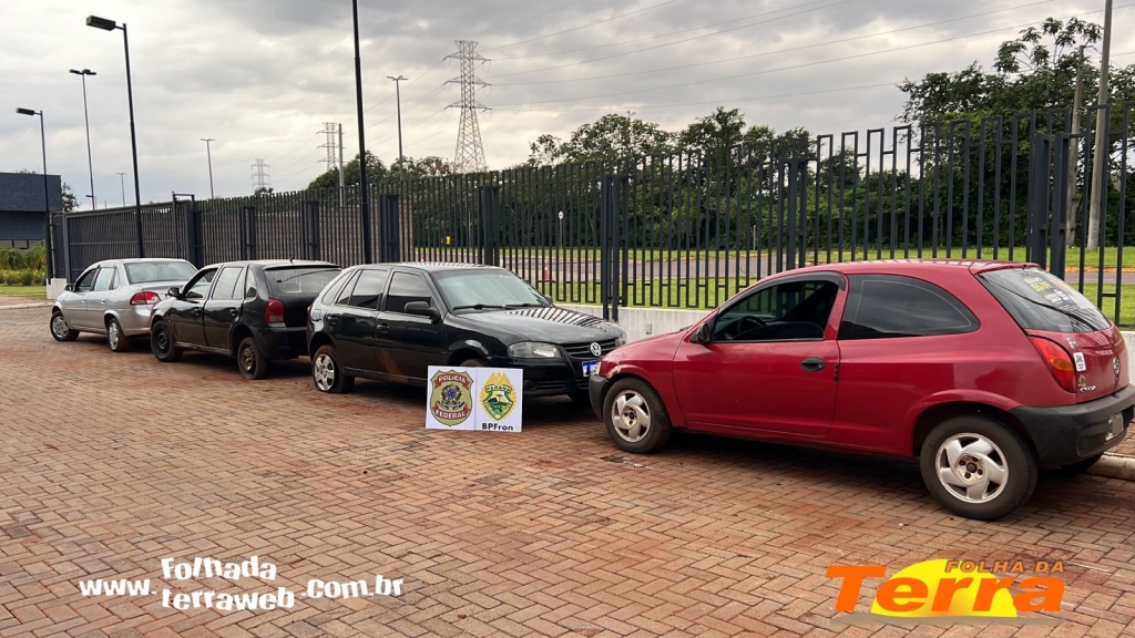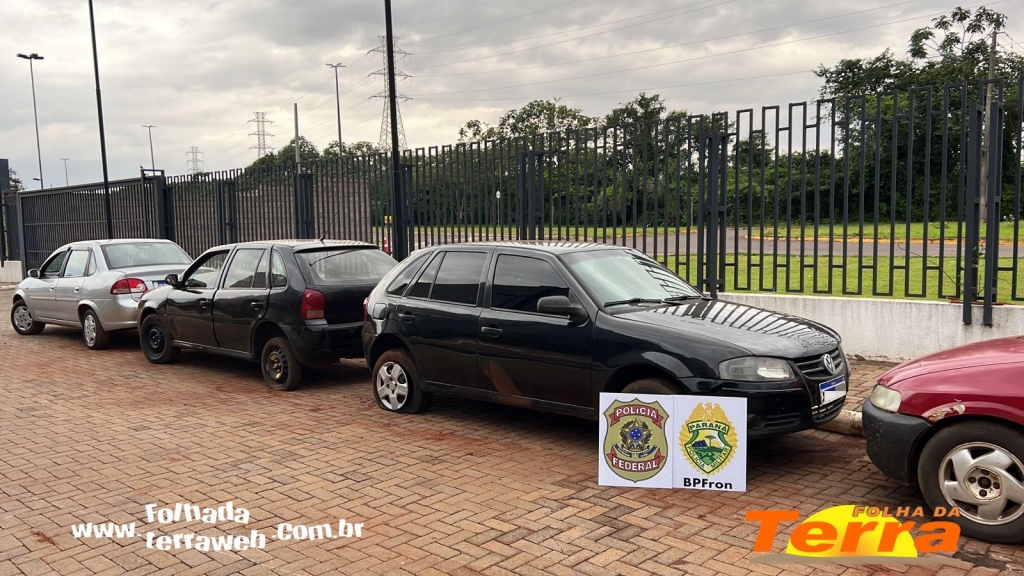 Guaíra - Na segunda-feira (10/10) policiais militares do BPFRON - Batalhão de Polícia de Fronteira em ação integrada com policiais federais realizavam patrulhamento em Guaíra-PR quando avistaram quatro veículos trafegando em alta velocidade por estradas rurais de Guaíra-PR. Após acompanhamento um dos veículos perdeu o controle e rodou na estrada e o condutor fugiu em meio a mata fechada. Após buscas pela região foram encontrados os outros três carros abandonados. Todos estavam equipados com rádio comunicador e possuíam apenas o banco do motorista. Em consulta ao sistema policial, constatou-se que dois eram produto de furto/roubo e os outros eram adulterados. Todos os materiais e veículos foram encaminhados a Delegacia de Polícia Federal de Guaíra-PR.