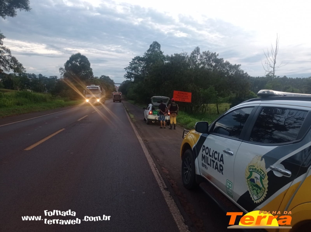 Nesta data por volta das 06h05 a equipe realizava operação de patrulhamento e fiscalização de trânsito e, em combate ao tráfico de drogas, contrabando e descaminho na PRC-323, município de Iporã, aproximadamente no km 512, avistou transitando em sentido contrário da viatura, (Guaíra a Iporã), um veículo VW/Gol de cor predominante branca ostentando placas de São Paulo, onde o veículo transitava em velocidade que chamou a atenção da equipe, sendo que aparentava estar com sobrecarga, com vidros escurecidos, de imediato a equipe realizou o retorno e com sinais luminosos, giroflex e sirene ordenou a parada do automovel, o condutor de 25 anos acatou a ordem de abordagem, a equipe então realizou uma busca no carro que de imediato foi constatado no assoalho embaixo do banco traseiro farta quantidade de maconha, sendo então dado voz de prisão ao condutor.