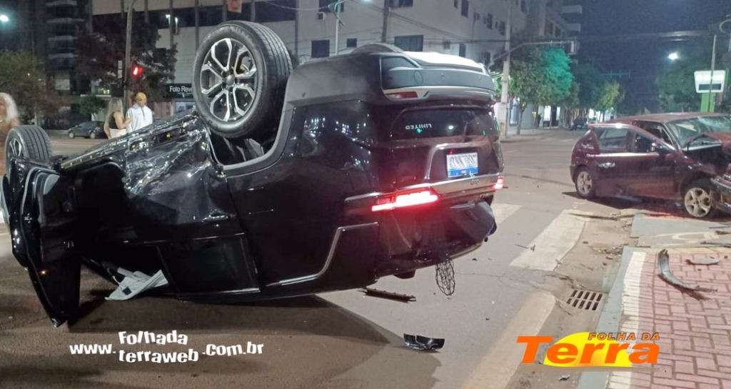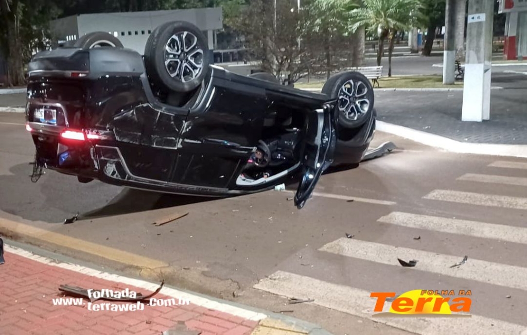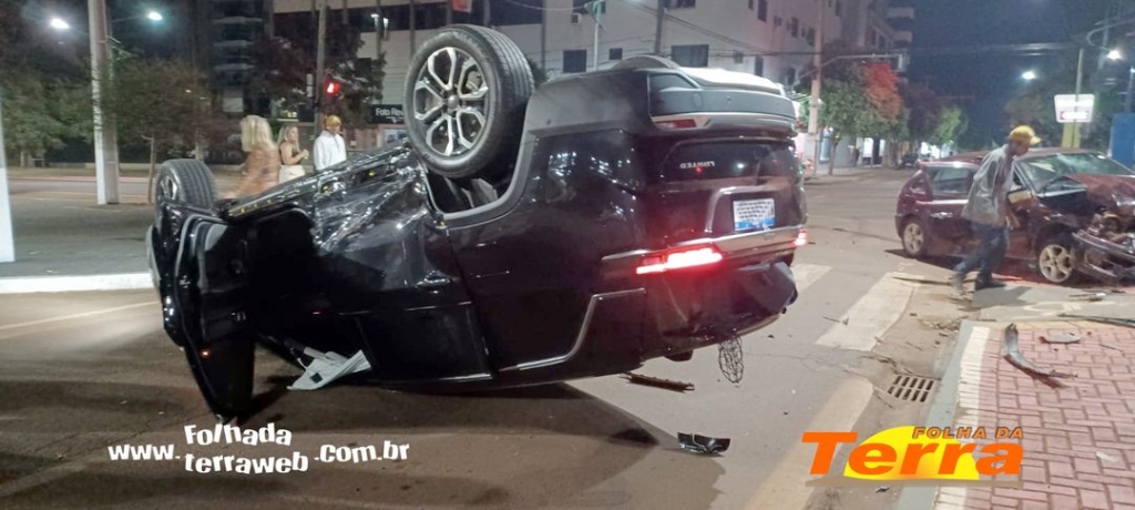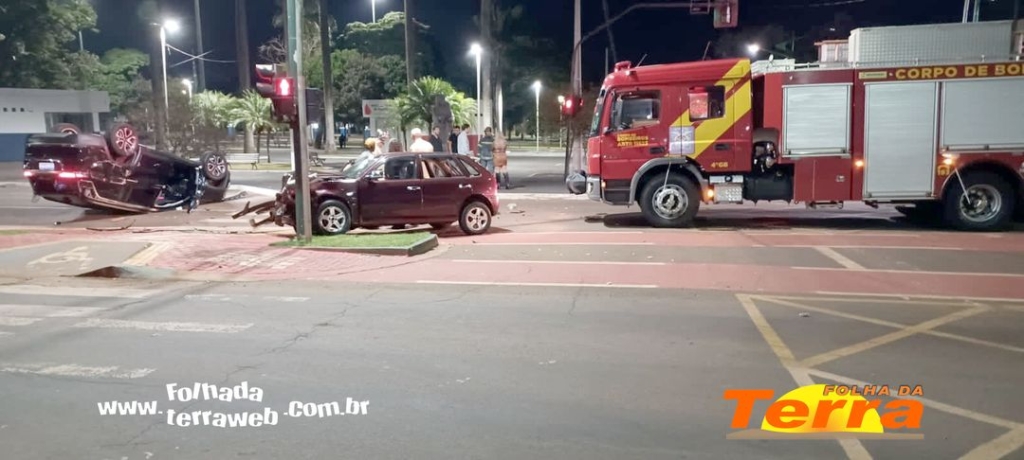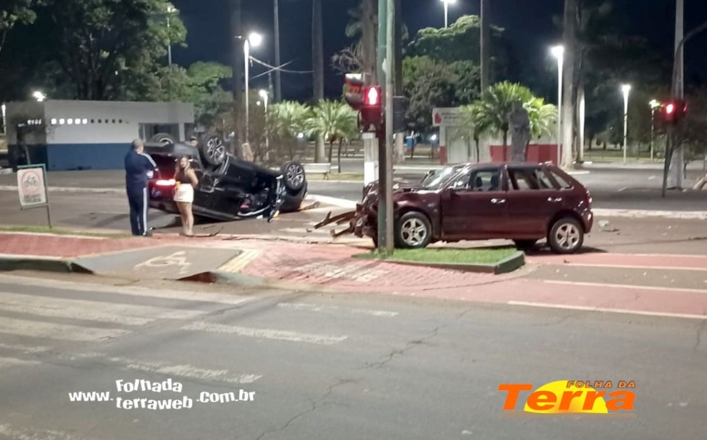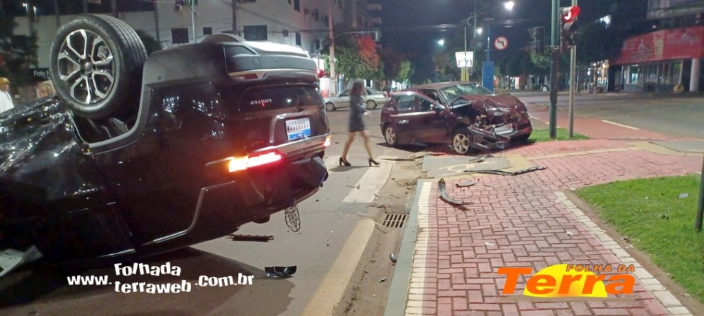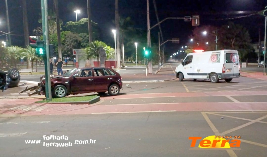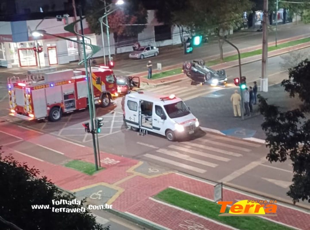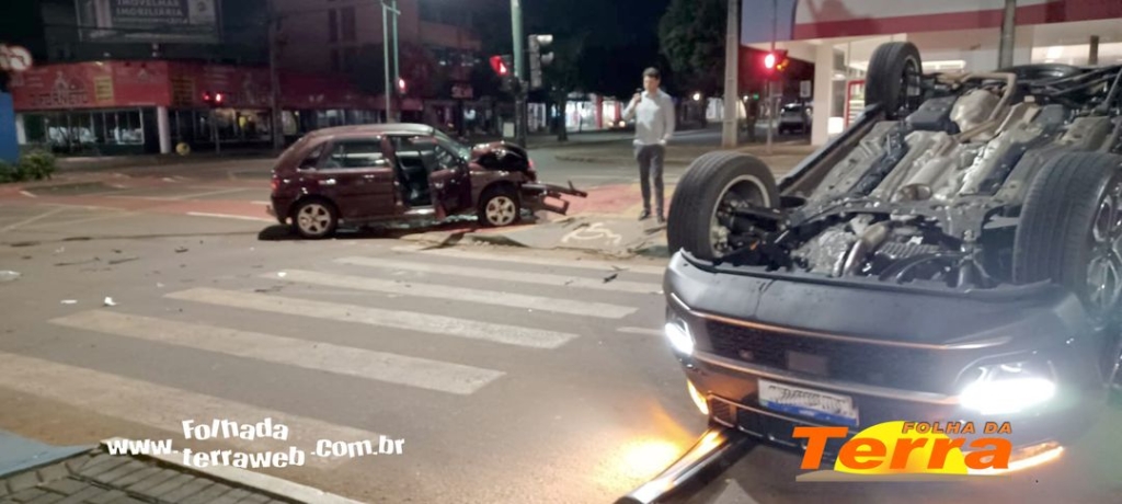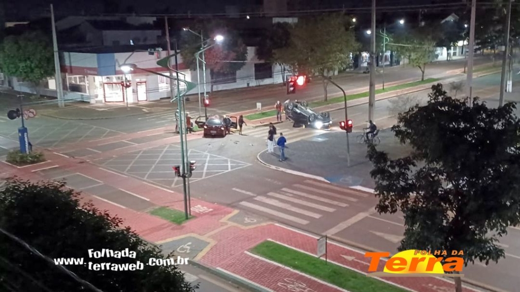 Palotina - Um acidente de grandes proporções foi registrado na madrugada deste sábado, dia 01, no cruzamento das avenidas Presidente Kennedy e Independência, envolvendo dois automóveis, sendo que um deles, com o impacto da batida, acabou tombando na pista.