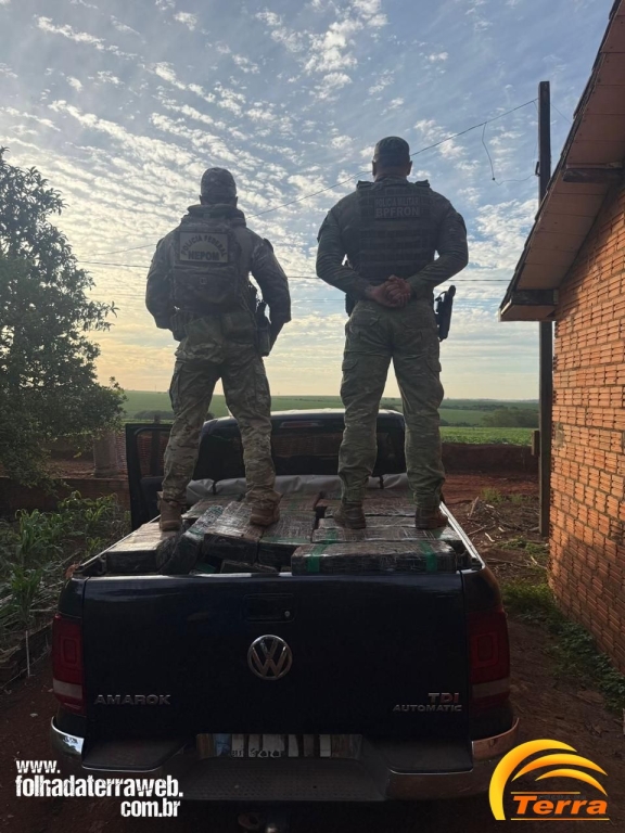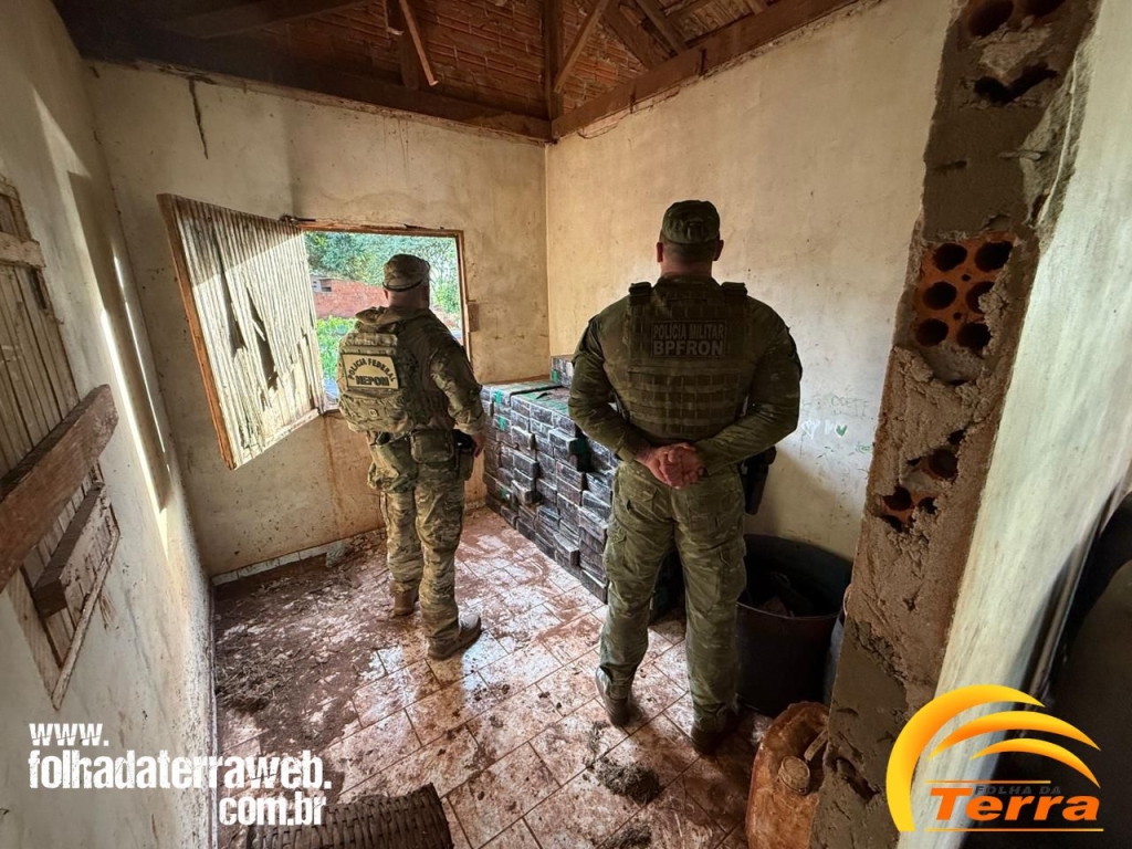 Nesta terça-feira (11/11), a Polícia Militar do Paraná por meio do Batalhão de Polícia de Fronteira (BPFRON), no âmbito da Operação Protetor de Divisas e Fronteiras, em ação conjunta com a Polícia Federal – NEPOM, receberam informações da existência de um possível depósito clandestino de entorpecentes na região. Diante das informações, as equipes deslocaram-se até o local indicado, onde iniciaram diligências preliminares. No endereço, foi localizada uma residência aparentemente abandonada, em estado de deterioração, sem muros, cercas ou qualquer outro tipo de obstáculo que impedisse o acesso. Observou-se ainda, que o imóvel não possuía portas nem janelas. Durante a aproximação, por meio de uma das aberturas, foi possível visualizar no interior da residência diversos fardos, de coloração preta e envoltos por fita adesiva, característicos de acondicionamento de substância entorpecente. Após a verificação, constatou-se tratar-se de 70 (setenta) fardos contendo substância vegetal análoga à Cannabis sativa (maconha), que após pesagem totalizaram 720,5 kg (setecentos e vinte quilos e quinhentos gramas). Foram realizadas diligências complementares nas imediações, com o intuito de identificar e localizar os responsáveis pela droga, porém ninguém foi encontrado no local. Diante dos fatos, o material apreendido foi encaminhado à Delegacia de Polícia Federal de Guaíra/PR, para as providências cabíveis.