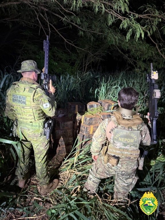 Nesta quinta-feira (11/12), a Polícia Militar do Paraná por meio do Batalhão de Polícia de Fronteira (BPFRON), no âmbito da Operação Protetor de Divisas e Fronteiras, em ação conjunta com a Polícia Federal - NEPOM-GRA, recebeu uma denúncia anônima sobre uma movimentação suspeita na área rural, em meio à mata ciliar, na Linha Bela Vista, no município de Terra Roxa/PR. Diante das informações, as equipes iniciaram buscas na região indicada pelo denunciante para averiguação. Em meio à vegetação, a equipe logrou êxito em localizar diversos fardos contendo substância análoga à maconha, que posteriormente, após pesagem, totalizaram 1.272,5 kg (mil duzentos e setenta e dois quilos e quinhentos gramas). Diante dos fatos, a equipe encaminhou o entorpecente à Delegacia de Polícia Federal para os procedimentos cabíveis.