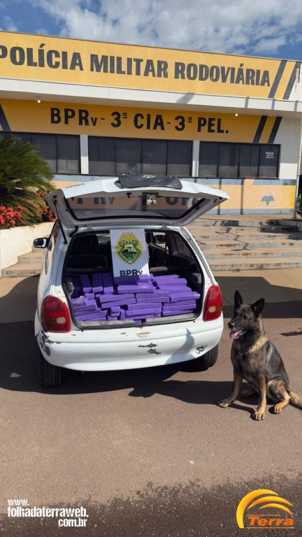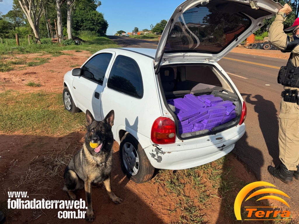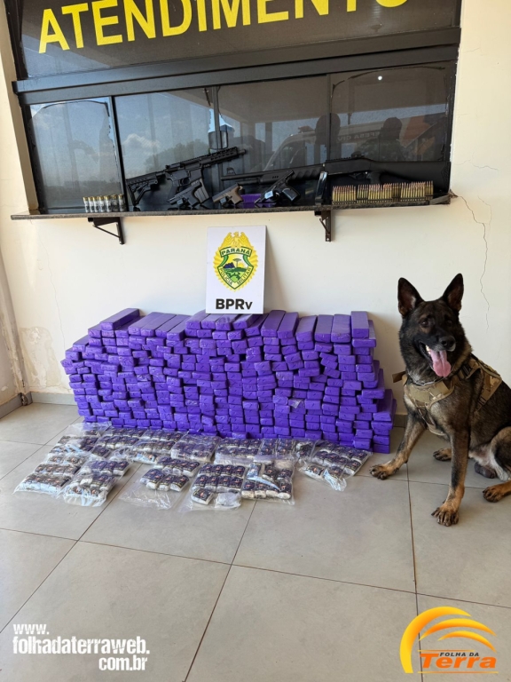 Na data de 13/01/2026, por volta das 07h30min, no âmbito da Operação Protetor, as equipes de Operações com Cães e ROTAM da 3ª Cia/BPRv, realizavam patrulhamento pela região de Iporã e ao transitarem pela PRC-272, nas proximidades do Km 506+600m, em frente a um posto de combustíveis, a equipe de Operações com Cães visualizou um veículo estacionado atrás de um caminhão em atitude suspeita . Ao se aproximarem para proceder à abordagem, o condutor empreendeu fuga repentina. O condutor prosseguiu em fuga por aproximadamente 500 metros, momento em que abandonou o veículo e evadiu-se a pé em direção a uma área de mata. Foram realizadas buscas na tentativa de localizá-lo, porém sem êxito. Após a contenção do veículo, constatou-se tratar de um GM/Corsa Super, de cor branca, ostentando as placas do município de Goioerê/PR. Em vistoria veicular, no porta-malas e no assoalho do banco traseiro, foi localizada grande quantidade de substância análoga à maconha, dividida em 287 tabletes, envoltos em fita adesiva de cor roxa, que, após contagem e pesagem, totalizaram 197,200 kg (cento e noventa e sete quilos e duzentos gramas). Ainda foram localizados 12 pacotes contendo 118 tabletes de substância análoga a haxixe, que, após pesagem, totalizaram 13,100 kg (treze quilos e cem gramas).